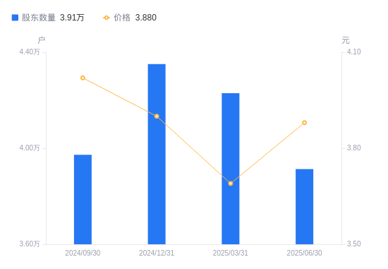 近一年(2024年6月30日至2025年6月30日),华神科技A股股东户数从4.02万户,减低至3.91万户,降幅2.63%,区间股价上涨12.46%。
