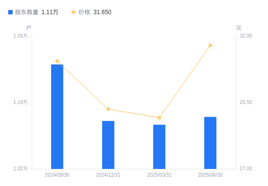 近一年(2024年6月30日至2025年6月30日),中科微至A股股东户数从1.21万户,减低至1.11万户,降幅7.62%,区间股价上涨25.23%。