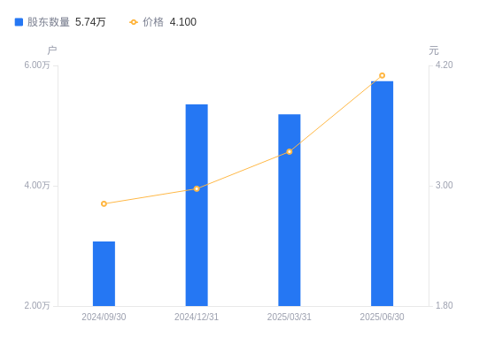 近一年(2024年6月30日至2025年6月30日),高乐股份A股股东户数从3.11万户,增加至5.74万户,增幅84.60%,区间股价上涨81.42%。