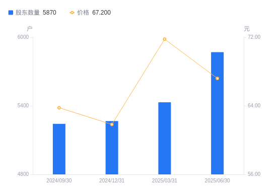 近一年(2024年6月30日至2025年6月30日),奥泰生物A股股东户数从5202户,增加至5870户,增幅12.84%,区间股价上涨52.07%。
