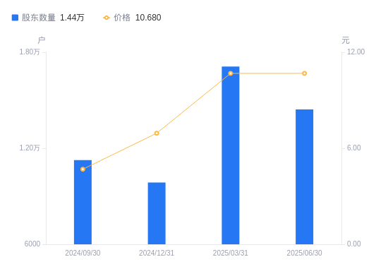 近一年(2024年6月30日至2025年6月30日),狮头股份A股股东户数从1.08万户,增加至1.44万户,增幅33.43%,区间股价上涨193.41%。
