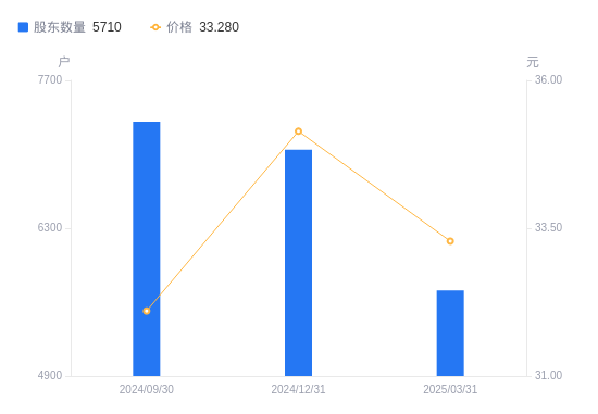 近一年(2024年6月30日至2025年6月30日),锴威特A股股东户数从7084户,减低至6440户,降幅9.09%,区间股价下跌7.84%。