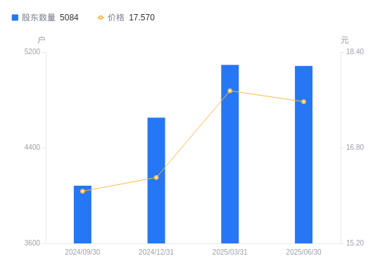 近一年(2024年6月30日至2025年6月30日),明志科技A股股东户数从4324户,增加至5084户,增幅17.58%,区间股价上涨35.97%。