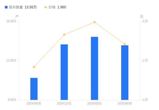 8月29日消息,数据显示,截至2025年6月30日,华联股份A股股东总户数为13.56万户,较上期(2025年3月31日)减少8705户,降幅6.03%。公司最新A股总股本为27.37亿股,其中流通A股27.35亿股,户均持有流通A股数量为2.02万股,较上期增加1217.23股,增幅6.42%;户均持流通A股市值3.95万元,较上期减少2922.51元,降幅6.88%。