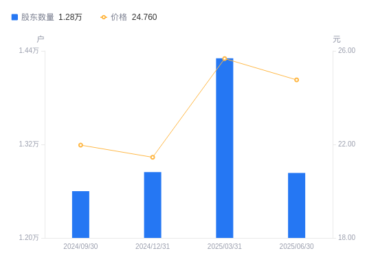 近一年(2024年6月30日至2025年6月30日),牧高笛A股股东户数从1.28万户,增加至1.28万户,增幅0.48%,区间股价上涨27.56%。