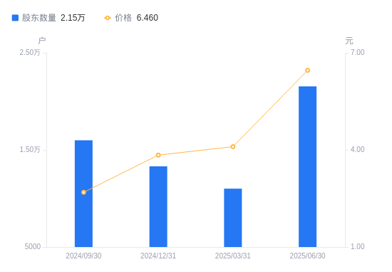 近一年(2024年6月30日至2025年6月30日),永悦科技A股股东户数从2.18万户,减低至2.15万户,降幅1.21%,区间股价上涨227.92%。