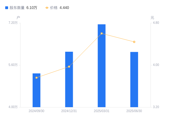 近一年(2024年6月30日至2025年6月30日),宁波能源A股股东户数从5.49万户,增加至6.1万户,增幅11.15%,区间股价上涨29.82%。