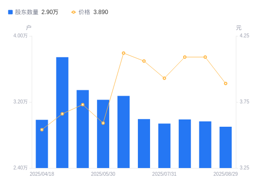 近一年(2024年8月30日至2025年8月29日),三木集团A股股东户数从3.07万户,减低至2.9万户,降幅5.42%,区间股价上涨55.60%。