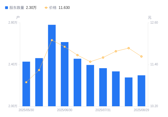 近一年(2024年9月20日至2025年8月29日),华尔泰A股股东户数从2.48万户,减低至2.3万户,降幅7.24%,区间股价上涨34.30%。