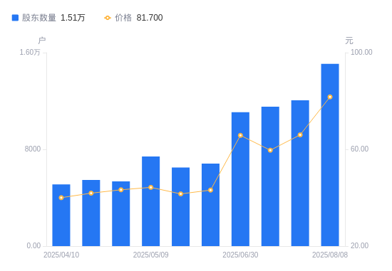 | 日期 | A股户数(户) | 流通A股户均持股数(股) | 户均持股市值(万元) |