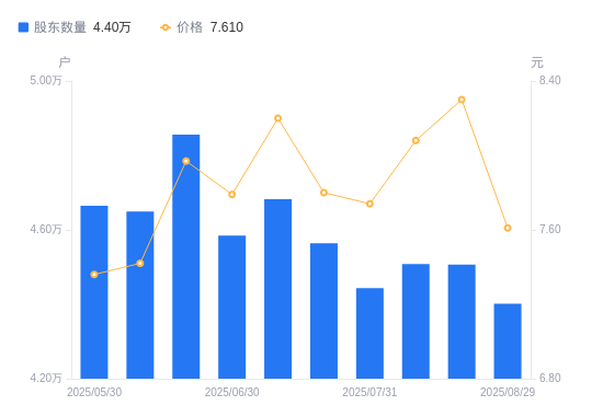 近一年(2024年8月30日至2025年8月29日),富瑞特装A股股东户数从4.72万户,减低至4.4万户,降幅6.82%,区间股价上涨27.68%。
