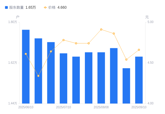 近一年(2024年9月10日至2025年9月10日),乔治白A股股东户数从1.77万户,减低至1.65万户,降幅7.15%,区间股价上涨20.73%。