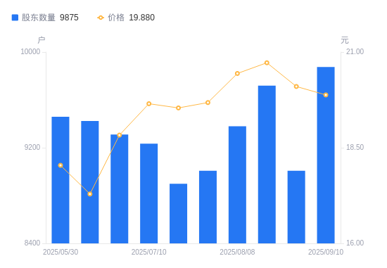 近一年(2024年9月10日至2025年9月10日),坤泰股份A股股东户数从1.14万户,减低至9875户,降幅13.18%,区间股价上涨50.45%。
