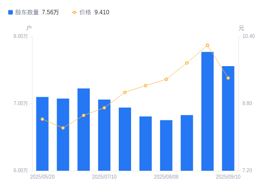 近一年(2024年9月10日至2025年9月10日),深天马AA股股东户数从7.51万户,增加至7.56万户,增幅0.60%,区间股价上涨43.01%。