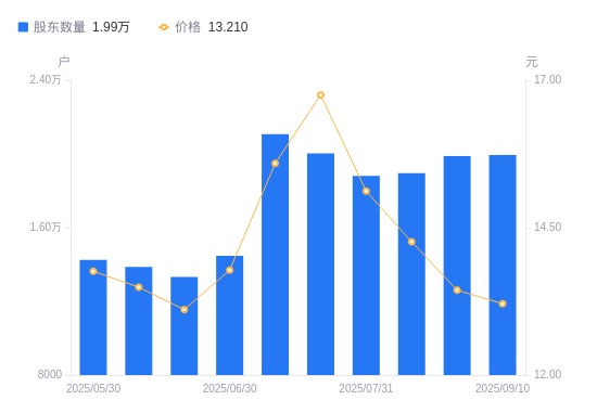 近一年(2024年9月30日至2025年8月29日),世名科技A股股东户数从1.15万户,增加至1.99万户,增幅72.12%,区间股价上涨24.21%。