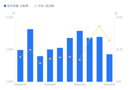 近一年(2024年9月10日至2025年9月10日),聚合顺A股股东户数从1.58万户,增加至1.81万户,增幅15.01%,区间股价上涨37.86%。
