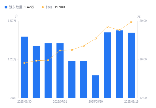 近一年(2024年9月20日至2025年9月19日),久祺股份A股股东户数从1.1万户,增加至1.42万户,增幅29.69%,区间股价上涨118.92%。