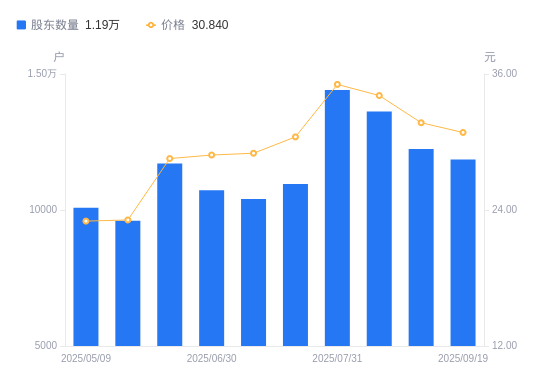 近一年(2024年9月30日至2025年9月19日),大宏立A股股东户数从8754户,增加至1.19万户,增幅35.41%,区间股价上涨107.26%。