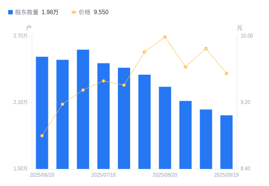 近一年(2024年9月20日至2025年9月19日),汇金通A股股东户数从1.73万户,增加至1.98万户,增幅15.02%,区间股价上涨41.63%。