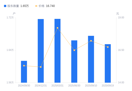 近一年(2024年9月30日至2025年9月19日),旺能环境A股股东户数从1.61万户,增加至1.65万户,增幅2.54%,区间股价上涨17.92%。