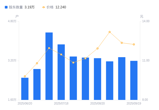 近一年(2024年9月20日至2025年9月19日),沃顿科技A股股东户数从2.58万户,增加至3.19万户,增幅23.71%,区间股价上涨63.13%。