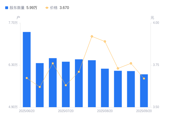 近一年(2024年9月30日至2025年9月20日),恒星科技A股股东户数从6.23万户,减低至5.99万户,降幅3.86%,区间股价上涨52.60%。