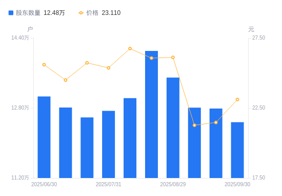 近一年(2024年9月20日至2025年9月19日),航天彩虹A股股东户数从8.43万户,增加至12.79万户,增幅51.79%,区间股价上涨63.64%。
