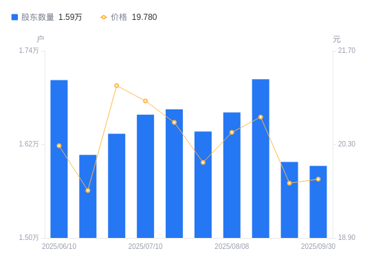 近一年(2024年9月30日至2025年9月30日),迦南智能A股股东户数从1.99万户,减低至1.59万户,降幅19.94%,区间股价上涨2.43%。