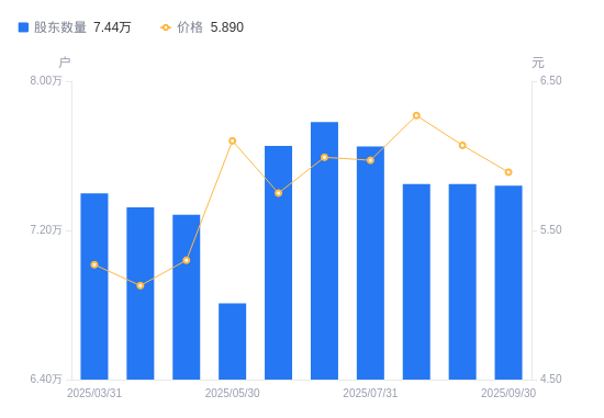 近一年(2024年9月30日至2025年9月30日),冀中能源A股股东户数从8.13万户,减低至7.44万户,降幅8.51%,区间股价上涨9.48%。