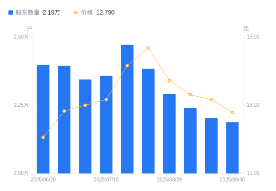 近一年(2024年9月30日至2025年9月30日),火星人A股股东户数从2.4万户,减低至2.19万户,降幅9.03%,区间股价下跌6.98%。