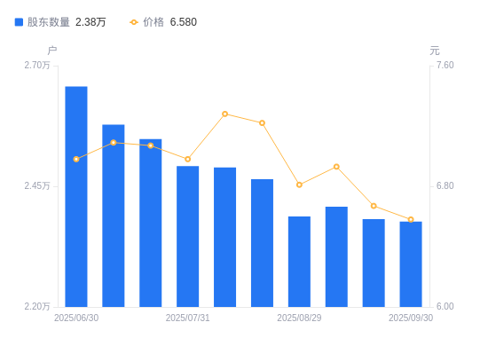 近一年(2024年9月30日至2025年9月30日),天禾股份A股股东户数从3.5万户,减低至2.38万户,降幅32.08%,区间股价上涨22.17%。
