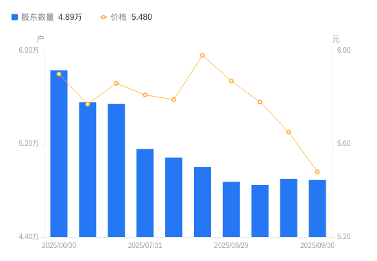 近一年(2024年9月30日至2025年9月30日),安凯客车A股股东户数从6.61万户,减低至4.89万户,降幅26.06%,区间股价上涨13.46%。