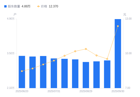 近一年(2024年9月30日至2025年9月30日),中山公用A股股东户数从3.63万户,增加至4.89万户,增幅34.70%,区间股价上涨58.79%。