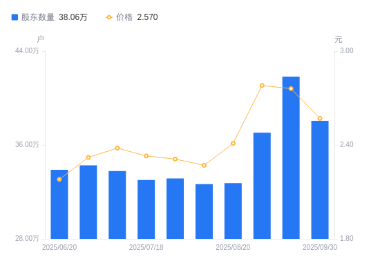 近一年(2024年9月30日至2025年9月30日),供销大集A股股东户数从11.78万户,增加至38.06万户,增幅223.09%,区间股价上涨29.80%。