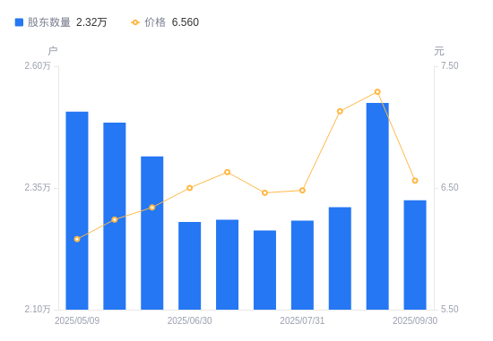 近一年(2024年9月30日至2025年8月20日),亿利达A股股东户数从2.92万户,减低至2.52万户,降幅13.41%,区间股价上涨43.50%。