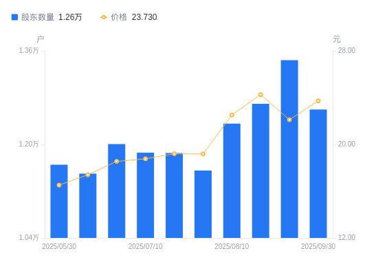 近一年(2024年9月30日至2025年9月30日),铭利达A股股东户数从1.11万户,增加至1.26万户,增幅13.75%,区间股价上涨48.22%。