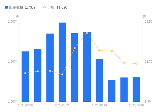 近一年(2024年10月10日至2025年10月10日),聚合顺A股股东户数从1.35万户,增加至1.73万户,增幅28.17%,区间股价上涨5.28%。