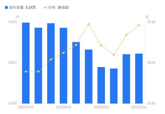 10月13日消息,数据显示,截至2025年9月19日,深城交A股股东总户数为2.92万户,较上期(2025年9月10日)减少220户,降幅0.75%。公司最新A股总股本为5.27亿股,其中流通A股5.27亿股,户均持有流通A股数量为1.81万股,较上期增加135.34股,增幅0.75%;户均持流通A股市值56.04万元,较上期减少1.61万元,降幅2.79%。