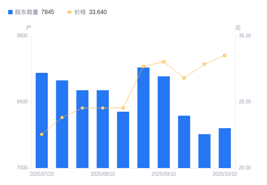 近一年(2024年10月18日至2025年10月10日),洁雅股份A股股东户数从7762户,增加至7845户,增幅1.07%,区间股价上涨95.01%。