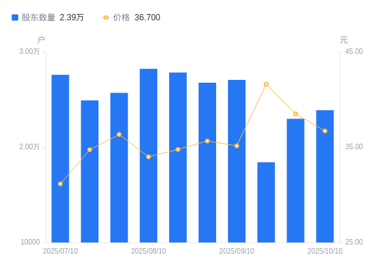 近一年(2024年10月18日至2025年10月10日),值得买A股股东户数从2.89万户,减低至2.39万户,降幅17.43%,区间股价上涨40.34%。
