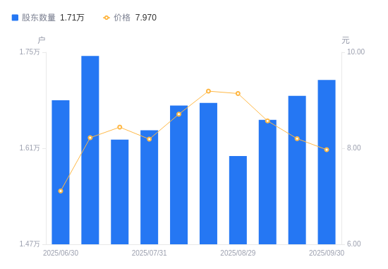 近一年(2024年9月20日至2025年9月19日),中洲控股A股股东户数从1.76万户,减低至1.69万户,降幅4.27%,区间股价上涨115.22%。