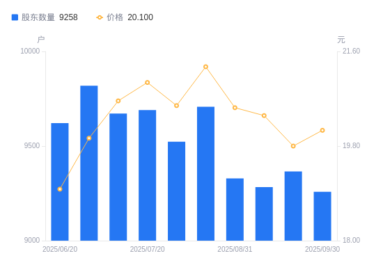 近一年(2024年9月30日至2025年9月30日),南大环境A股股东户数从8293户,增加至9258户,增幅11.64%,区间股价上涨5.02%。