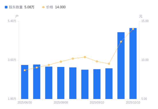 近一年(2024年10月10日至2025年10月10日),中山公用A股股东户数从3.66万户,增加至5.08万户,增幅38.83%,区间股价上涨62.60%。