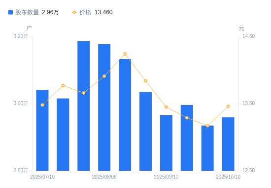 近一年(2024年9月30日至2025年9月30日),宁夏建材A股股东户数从3.05万户,减低至2.93万户,降幅3.81%,区间股价上涨11.80%。