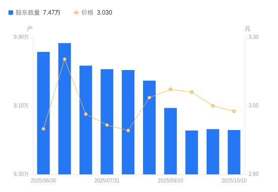 近一年(2024年9月30日至2025年9月30日),我爱我家A股股东户数从11.73万户,减低至7.49万户,降幅36.16%,区间股价下跌10.19%。