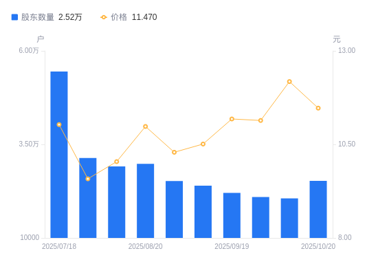 近一年(2024年11月8日至2025年10月20日),联发股份A股股东户数从1.98万户,增加至2.52万户,增幅27.41%,区间股价上涨51.12%。