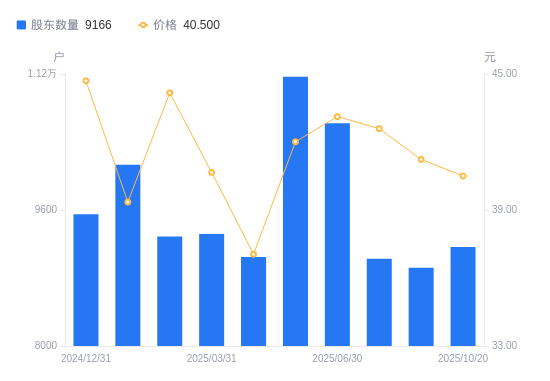 近一年(2024年11月8日至2025年10月20日),贝隆精密A股股东户数从1.08万户,减低至9166户,降幅15.11%,区间股价下跌21.41%。