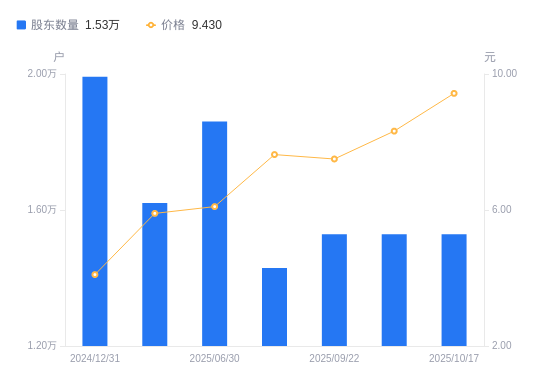 近一年(2024年9月30日至2025年9月22日),德力股份A股股东户数从2.04万户,减低至1.53万户,降幅24.95%,区间股价上涨69.68%。