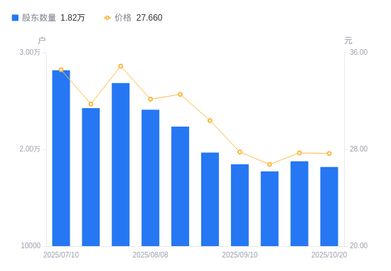 近一年(2024年11月20日至2025年10月20日),邵阳液压A股股东户数从1.18万户,增加至1.82万户,增幅53.53%,区间股价上涨62.82%。