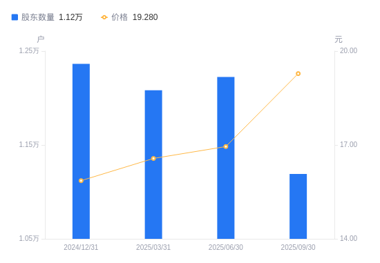 近一年(2024年9月30日至2025年9月30日),西高院A股股东户数从1.3万户,减低至1.12万户,降幅13.77%,区间股价上涨26.17%。